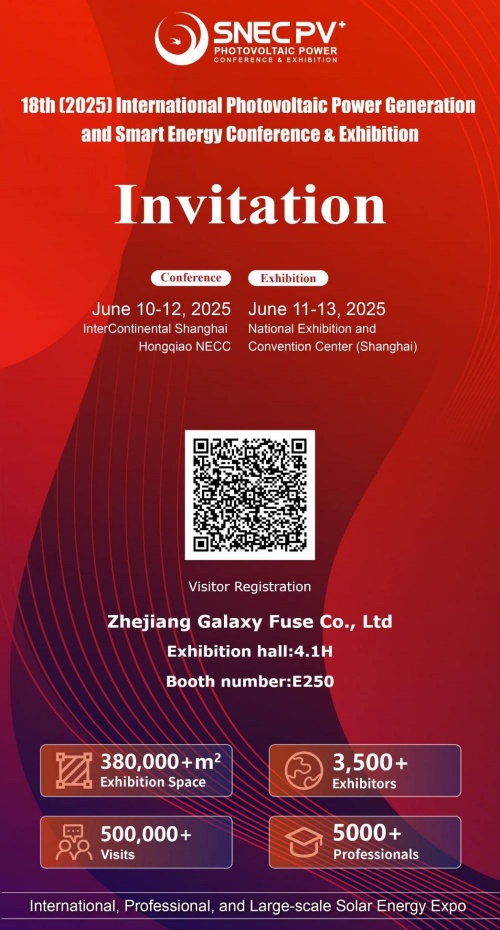 Bunu elan etməkdən məmnunuqZhejiang Galaxy Fuse Co., Ltd. qarşıdakılarda sərgilənəcək18-ci (2025) Beynəlxalq fotovoltaik güc nəsli və Smart Enerji Konfransı və Sərgi (SNEC PV + 2025)Şanxayda. Fotovoltaik və yeni enerji sektorlarında əsas illik bir hadisə olaraq, SNEC PV +, ən son texnologiyaları və məhsulları nümayiş etdirən və mütəxəssislər və mütəxəssisləri bir araya gətirir.